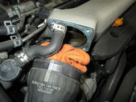 アウディー用テスター(VAG-COM)で総合診断していき、各部点検していきます。こいつを外して・・・