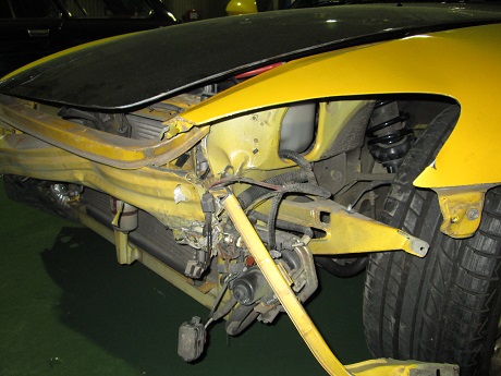 ショックです。自社で販売して、先日ナビも付けたホンダS2000が入庫しました。 見るも無残、クラッシュしています。 フレーム修正、各パーツ交換等大変な作業です・・・が、綺麗に直ります。車両保険も入っていなかったので、中古パーツ等を絡めて頑張ります。